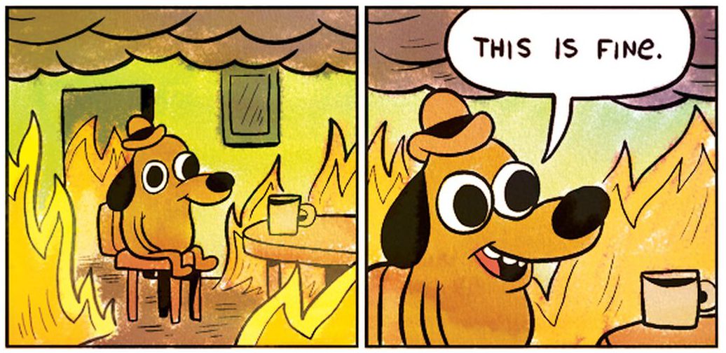 These days, I find myself trapped between two memes. Somewhere between a cozy, fiery hellscape